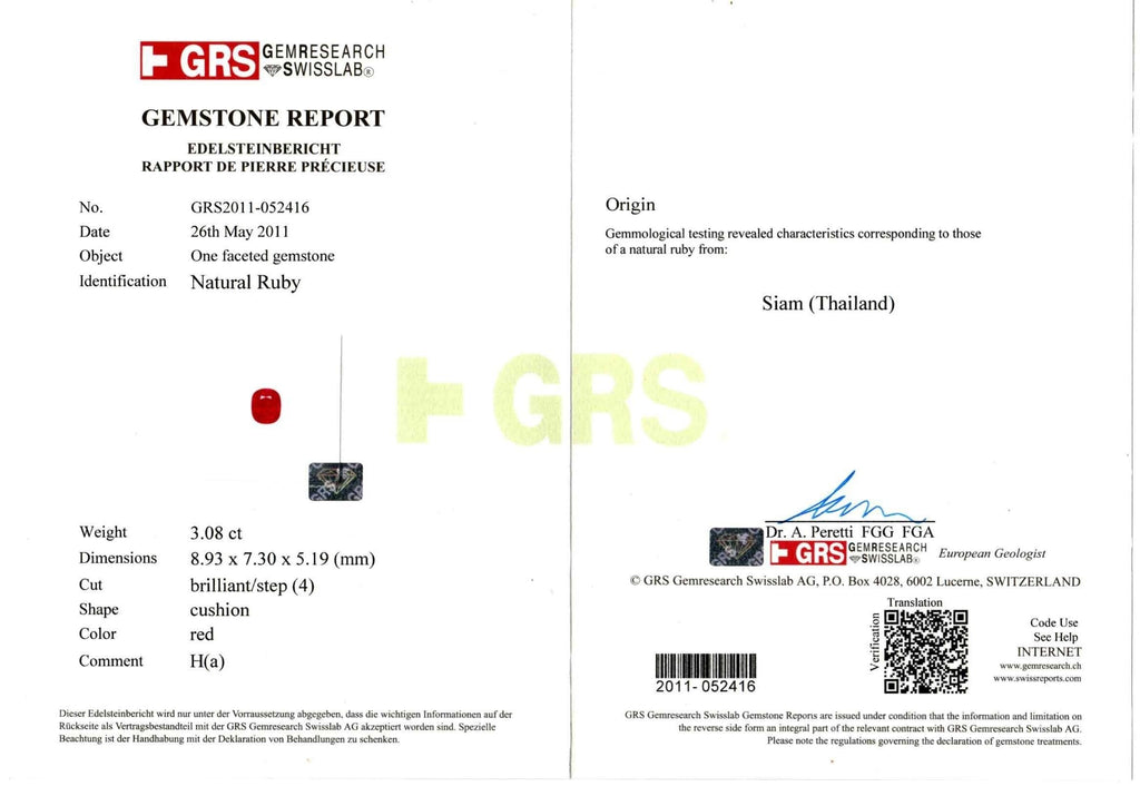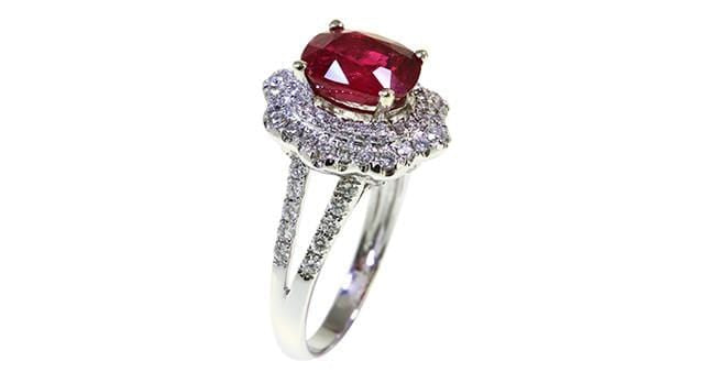 Material: 1pc Ruby - 3.08ct, 98 pcs Diamonds - 0.77ct, 18K White Gold