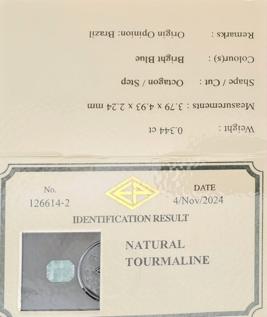Here's a beautiful 0.34ct emerald cut Paraiba Tourmaline from Brazil.